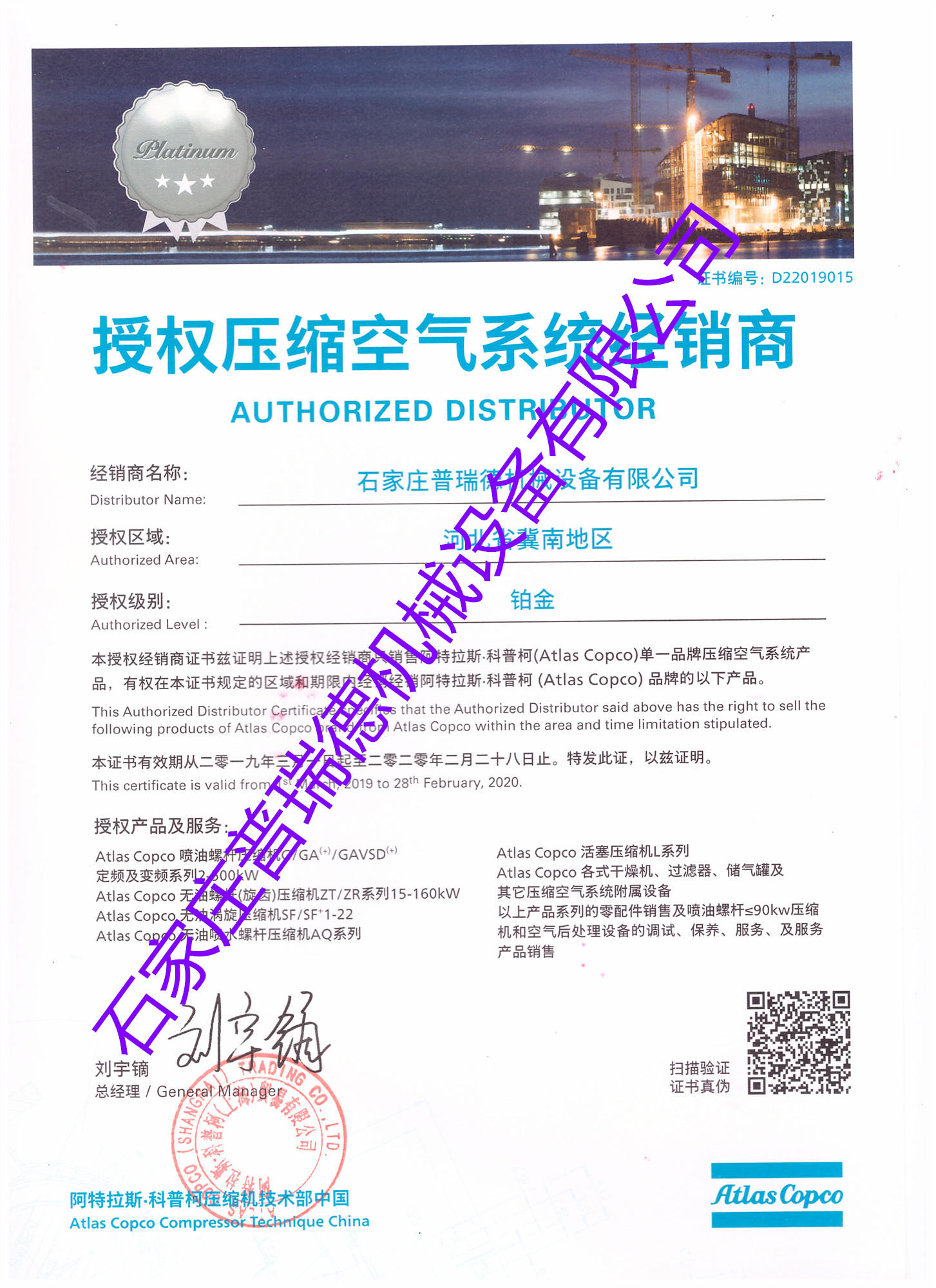 2019年代辦署理商證書